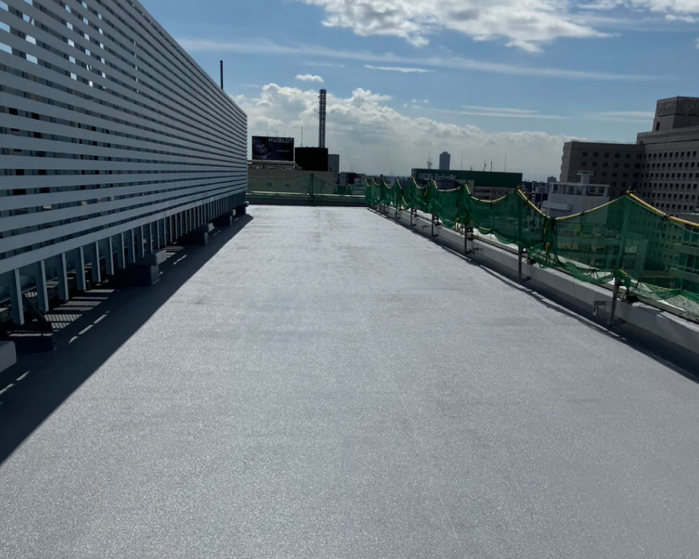 今回は名古屋市にあるビルの屋上を高強度ウレタン防水にて施工しました。
