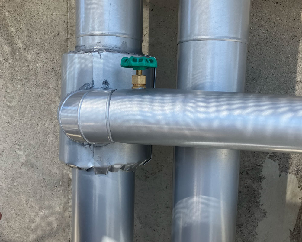 そこで今回は、新しい保温材を巻き直した上から、シルバーの板金(ラッキング)を施しました。