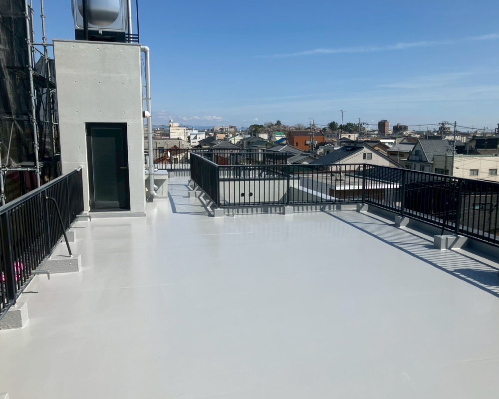 施工後は、ひび割れもしっかりと補修され、見違えるほど美しい屋上に仕上がりました!お客様からも「これで大雨の日も安心して過ごせます」と大変お喜びいただけました。